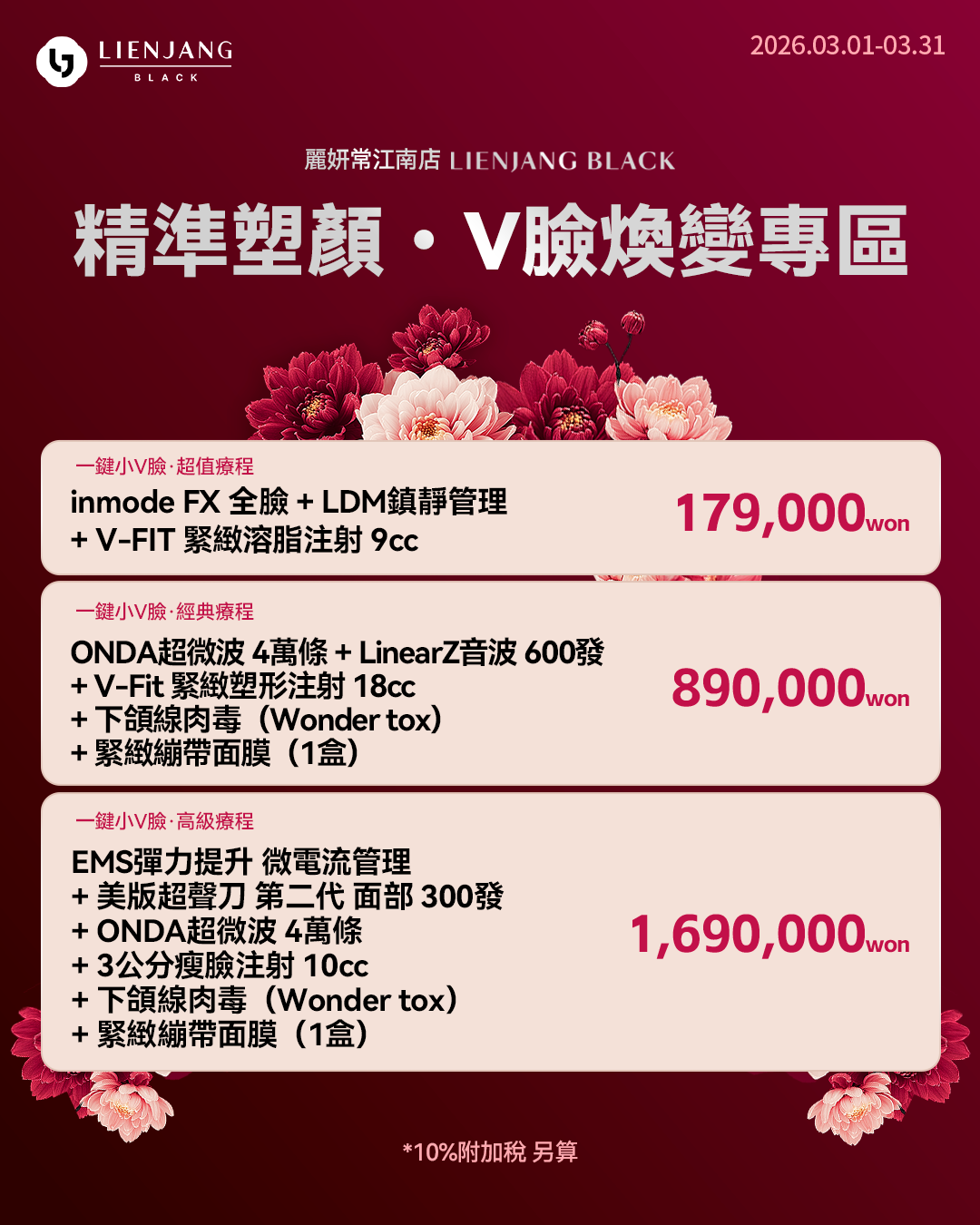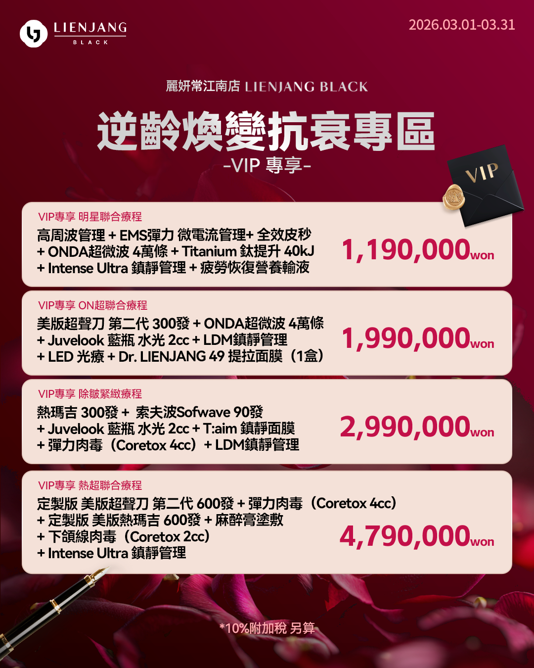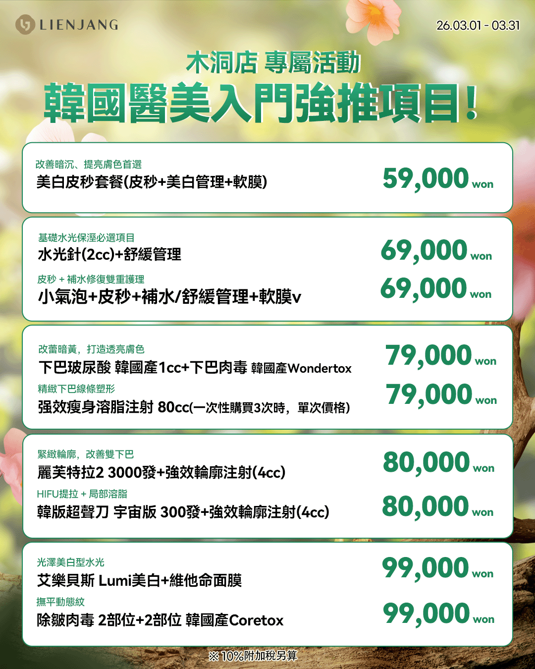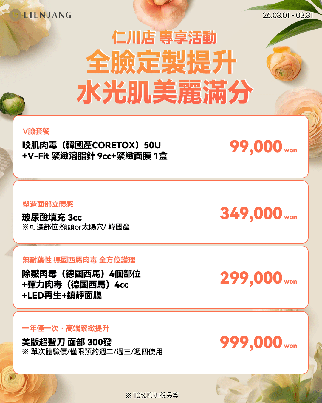 所有價格皆需另加10%增值稅(VAT)