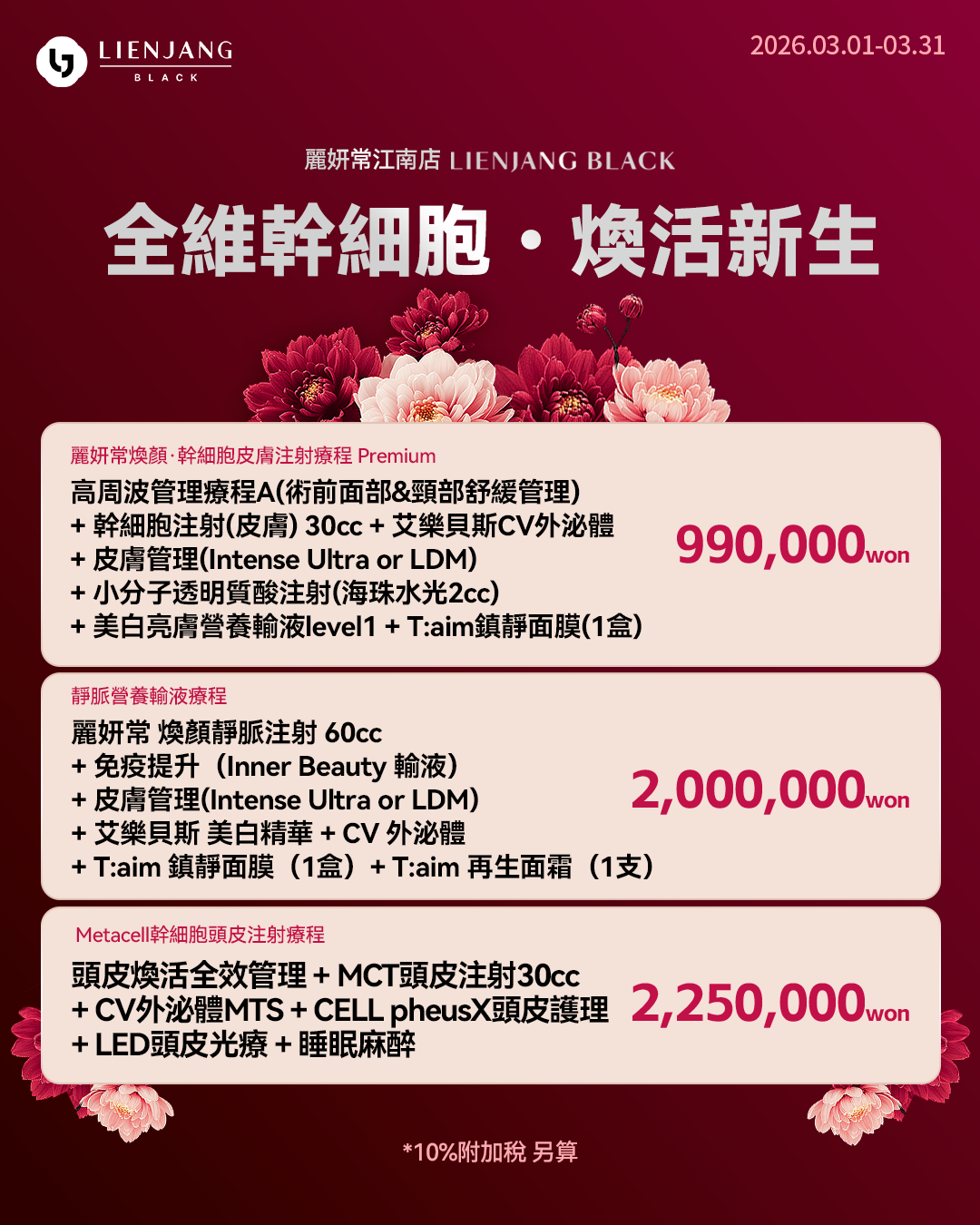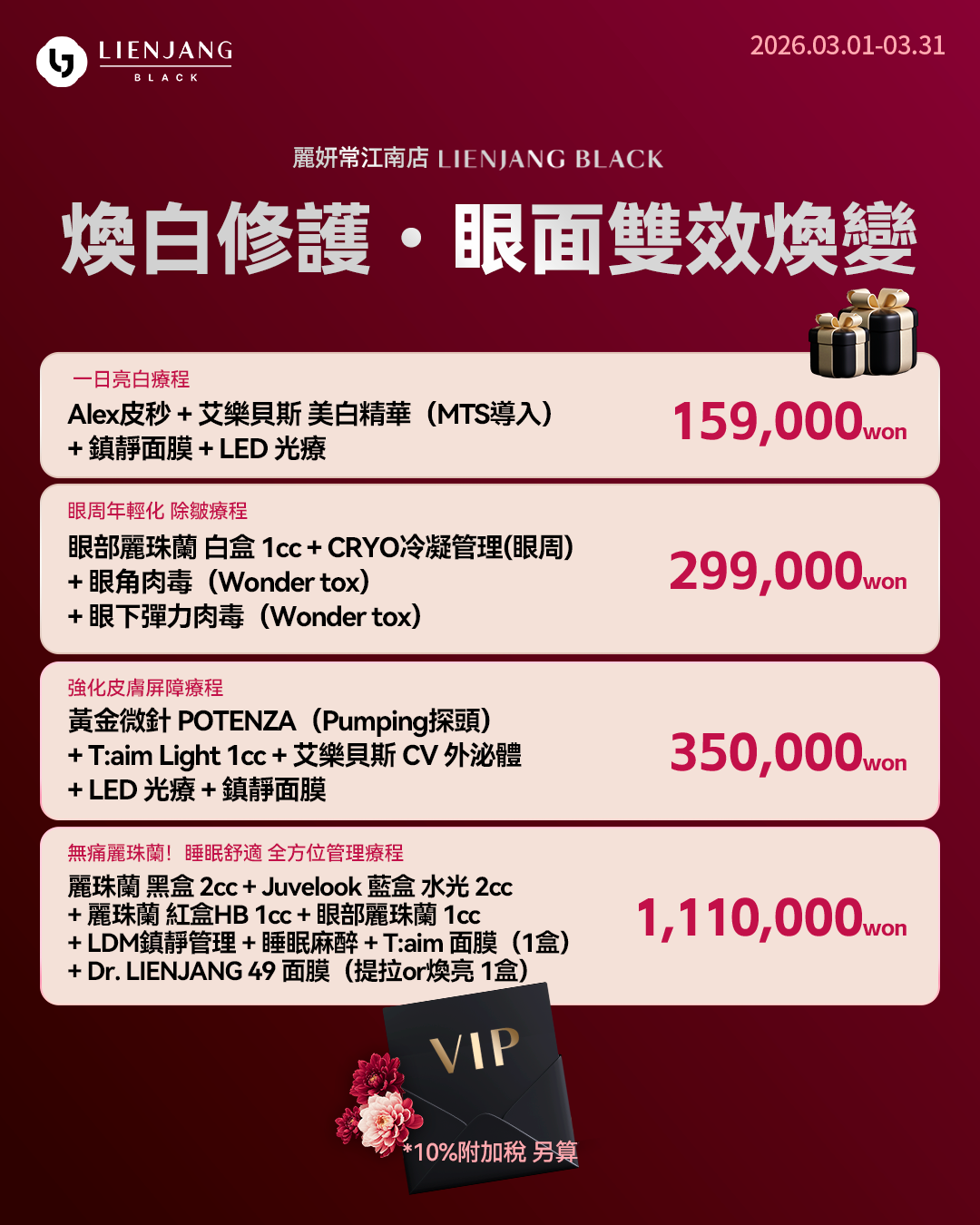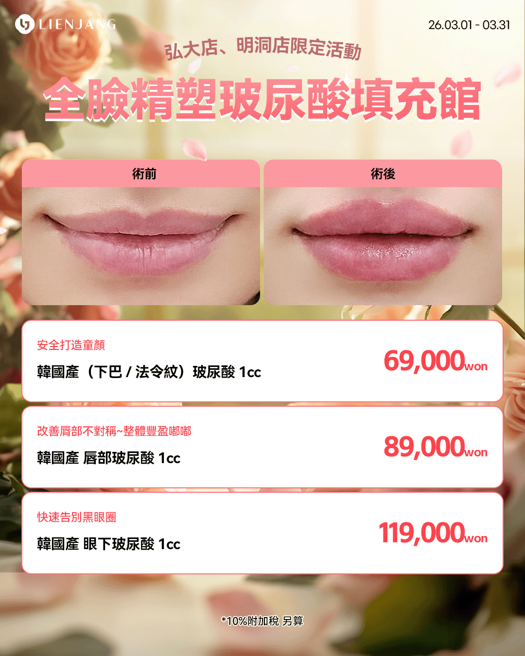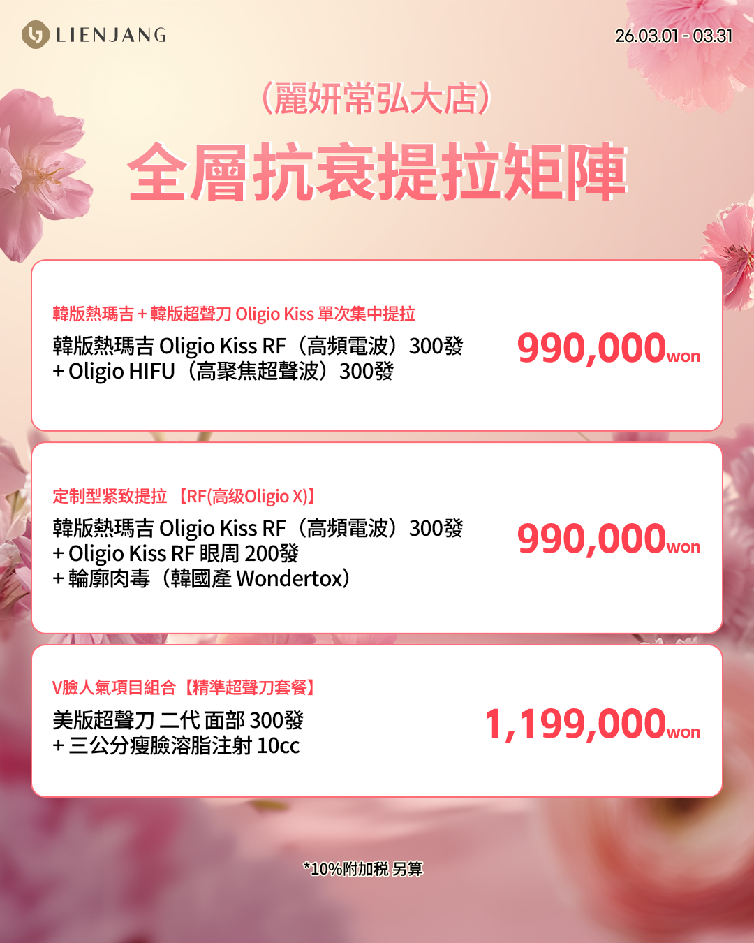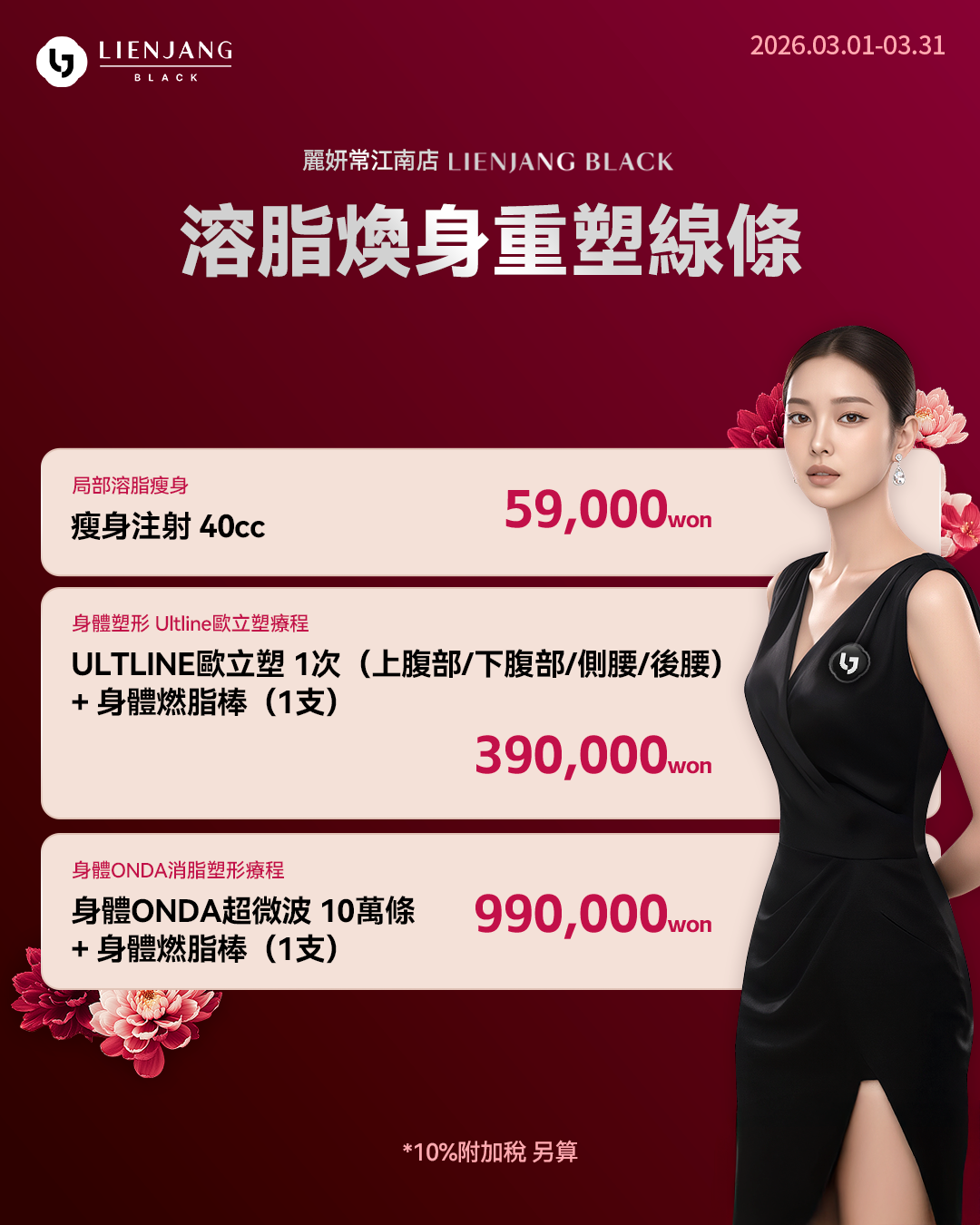 所有價格皆需另加10%增值稅(VAT)